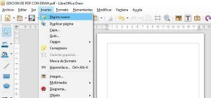Si lo que necesitamos es combinar dos archivos pdf en uno, hay un truco que da un resultado aceptable. Abrimos dos ventanas diferentes de Draw, una por cada documento que queremos combinar. Después nos vamos al documento donde queremos pegar la otra página y nos vamos al menú Insertar / página nueva.